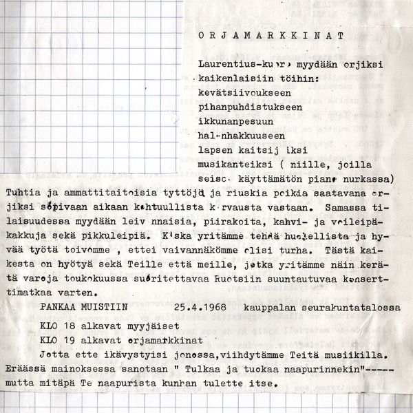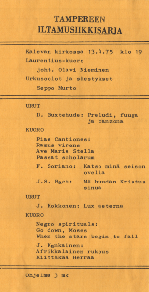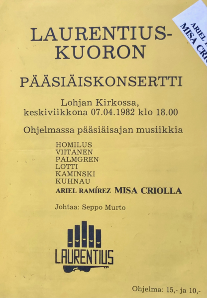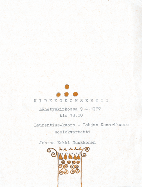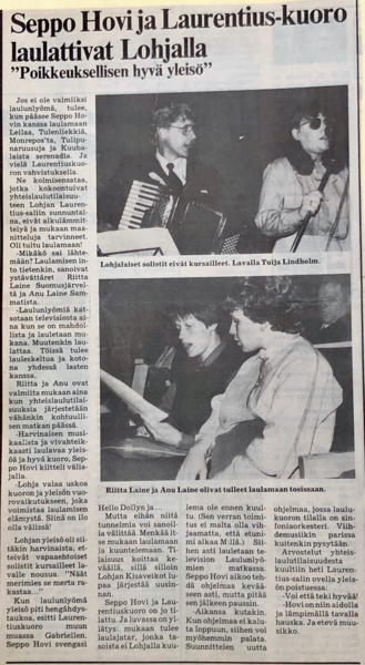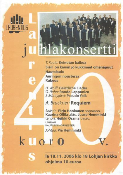 Seuraavat poiminnot Laurentius-kuoron historiasta on koottu leikekirjojen, entisten ja nykyisten kuorolaisten säilyttämien kuvien, ohjelmien, julisteiden ym. tiedonsirpaleiden sekä muistojen pohjalta.
